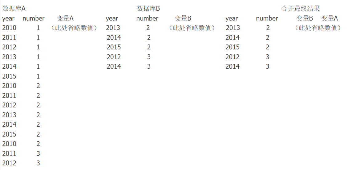 必读疏 发表于 2023-8-17 21:23 use "B.dta" merge number year using A.dta drop _m