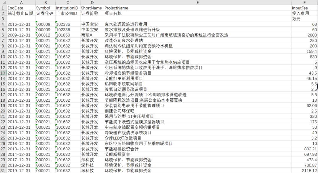 包含了上市公司环境绩效、环境披露、环境投资、排污许可等数据。