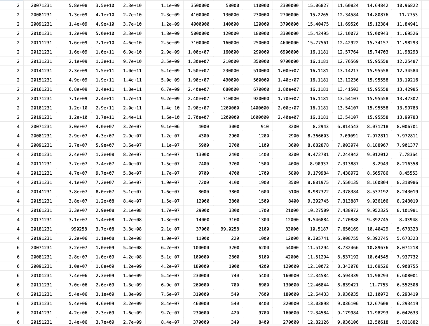 time variable: enddate, 20071231 to 20191231, but with gaps