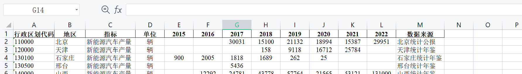 中国各地区-新能源汽车产量(2015-2022年).xlsx