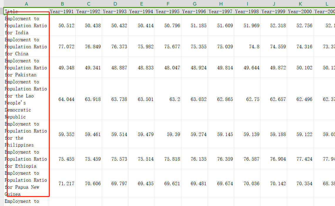 [tr]背景:[tr]该数据集通过python代码从美联储经济数据(FRED) API和世界银行网站中提取。主题数据集涉及1991年至2022年32年间的就业与人口比率。就业与人口比率是一个国家或地区的就业人口比例,其中15岁及以上人口通常被视为工作年龄人口(根据Fred模拟的ILO估计值)。