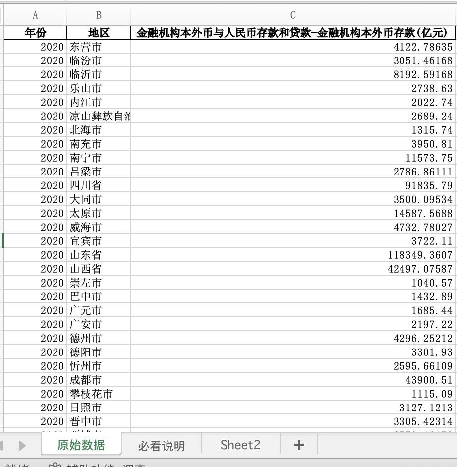 数据名称:全国各城市地级市-金融机构本外币存款Excel面板数据