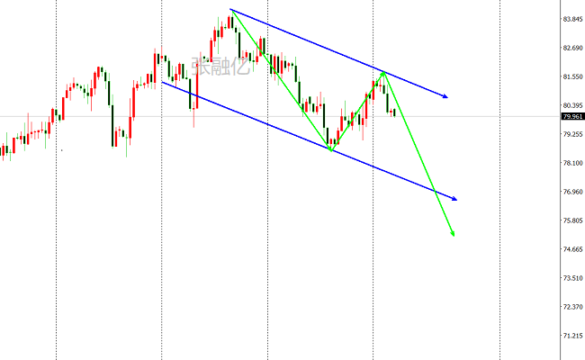 原油周二窄幅震荡中,高点在80.35区域遇阻,低点在80.5区域企稳震荡。原油日线走势图上看,油价二连阳之后出现了一根阴线避雷针形态,进一步表明油价的多头已经出现了转势。从整体趋势上看,油价在84.870美元/桶遇阻后出现第一波下跌,给到78.5美元之后,油价的空头出现了加速,周一在触及81.7美元之后再次遇阻,预示了油价去死再次出现了转变。综上所述张融亿总结:原油大跌有望延续,今日操作上考虑反弹做空为主,低多为辅,上方关注80.3-81.3美元阻力,下方关注79.0-78.4美元支撑,下破后将加速。今日原油在80.0-80.3多次布局空单,最低给到了79.5水平止盈。
