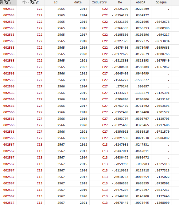 修正的琼斯模型应计盈余管理数据2001-2022附stata代码 修正的jones模型DA信息透明度