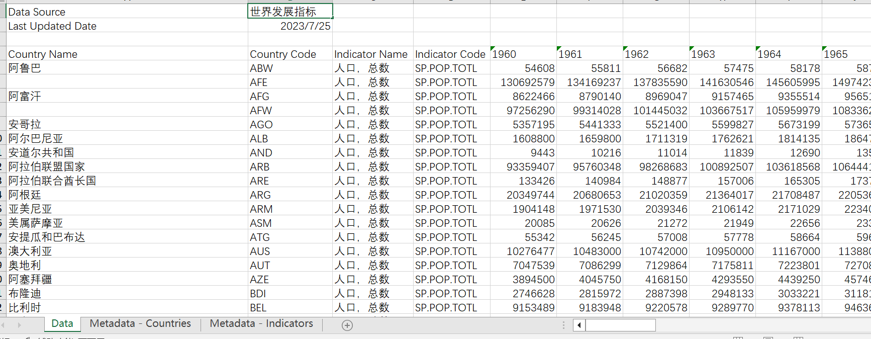 世界各国人口总数1960-2022