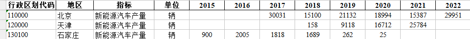 中国各地区-新能源汽车产量(2015-2022年).xlsx