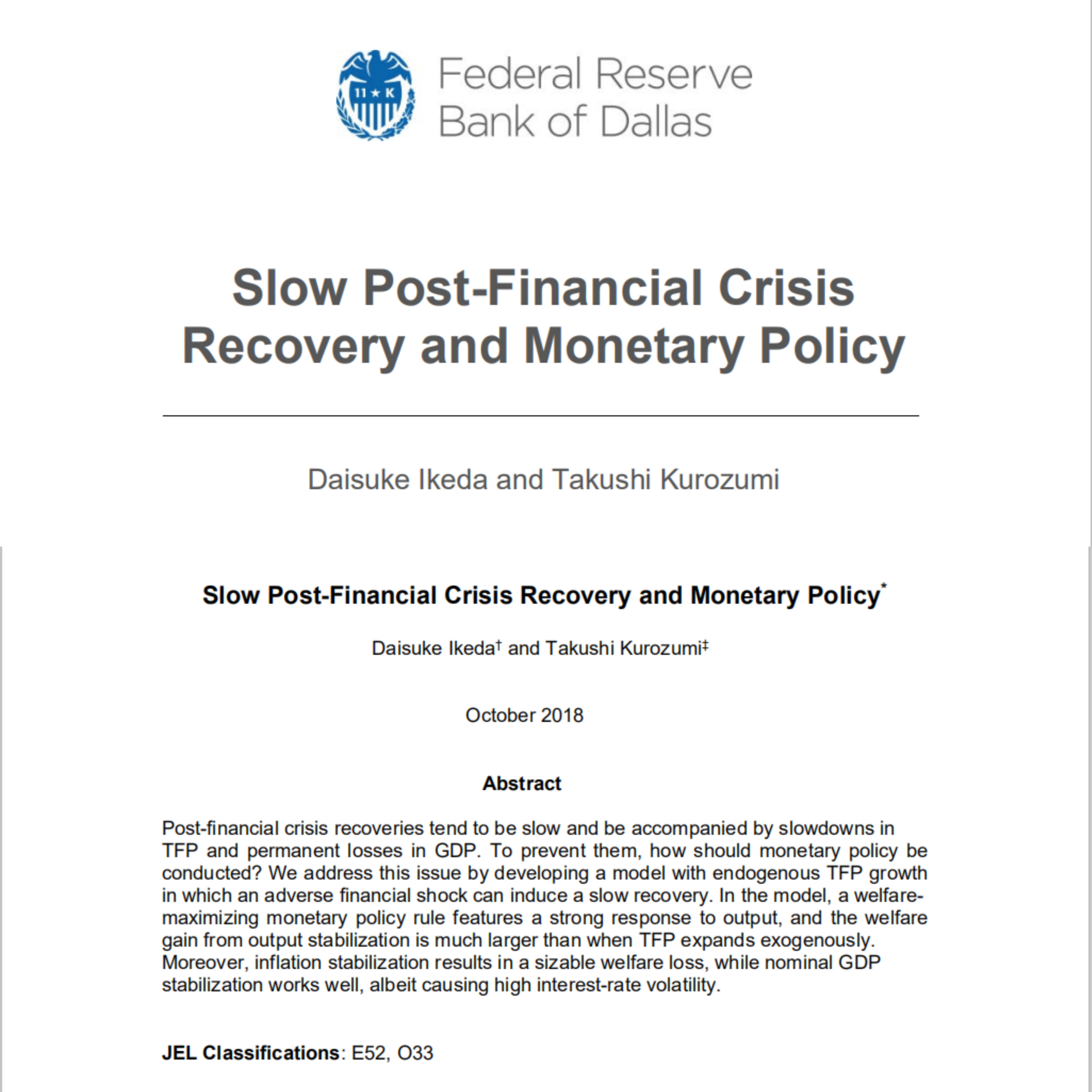 4. Ikeda & Kurozumi (2020,AEJM) 后金融危机时代经济复苏和货币政策。