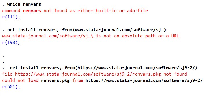 如何安装stata里的renvars命令啊 它一直在报错 顺便求大佬们推荐一下stata学习路径 在准备写经管保研小论文想学习一下!