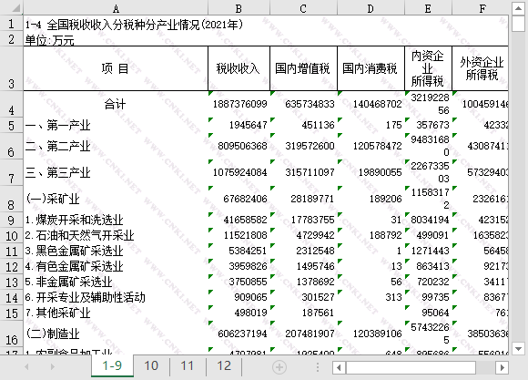 中国税收收入分税种分产业收入2004-2021增值税消费税个人企业所得税资源税城市维护建设税房产税印花税契税环境保护税等等