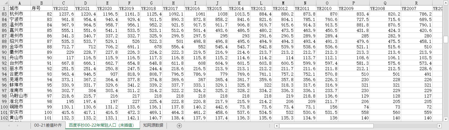 百度手抄2000-2022年常驻人口(未插值),其中:2022年度仅51个城市有数据,介意勿拍。