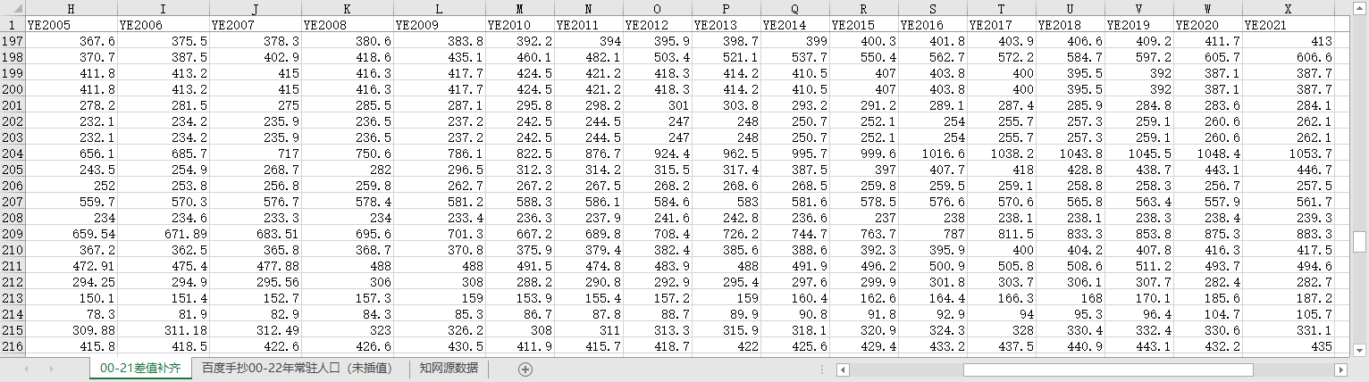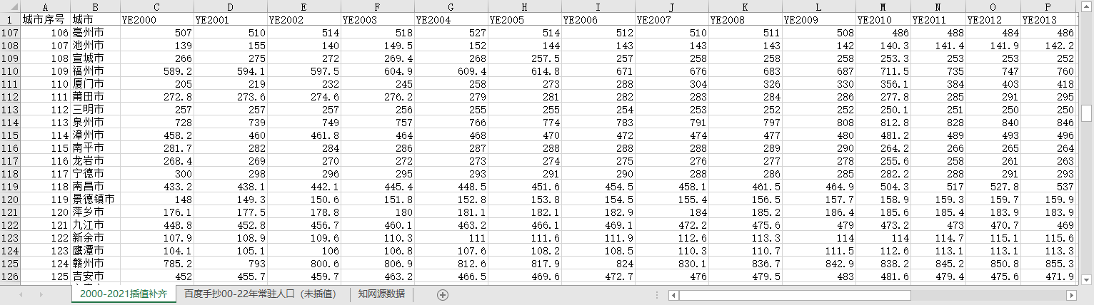 2000-2021插值补齐(297个城市没有缺失)