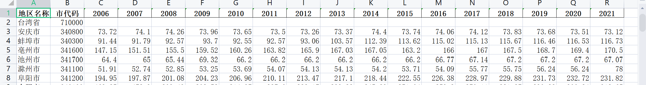 【地级市】300左右个地级以上市 绿地面积 1994-2020年