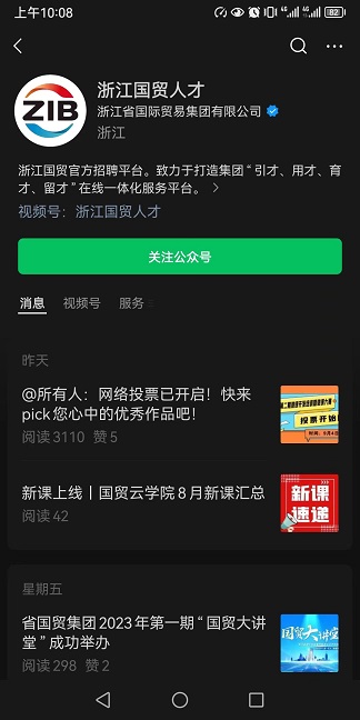 funnyme 发表于 2023-9-5 10:31 征集投票啦。关注微信公众号浙江国贸人才,聊天页面选择右下角的网络投票,搜索10号,验证后投票,每天5票, ...