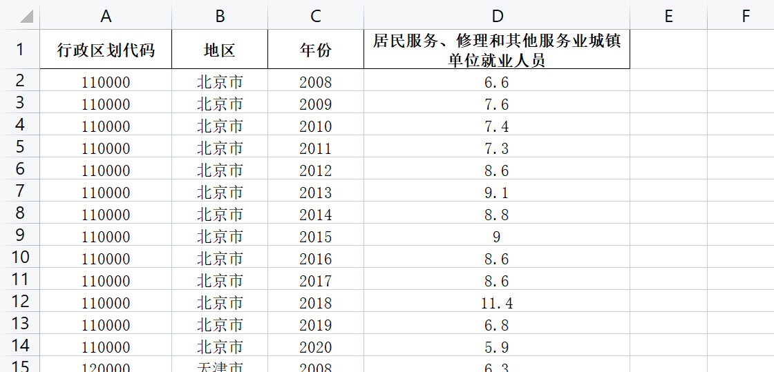 分省居民服务、修理和其他服务业城镇单位就业人员2004-2020.xlsx
