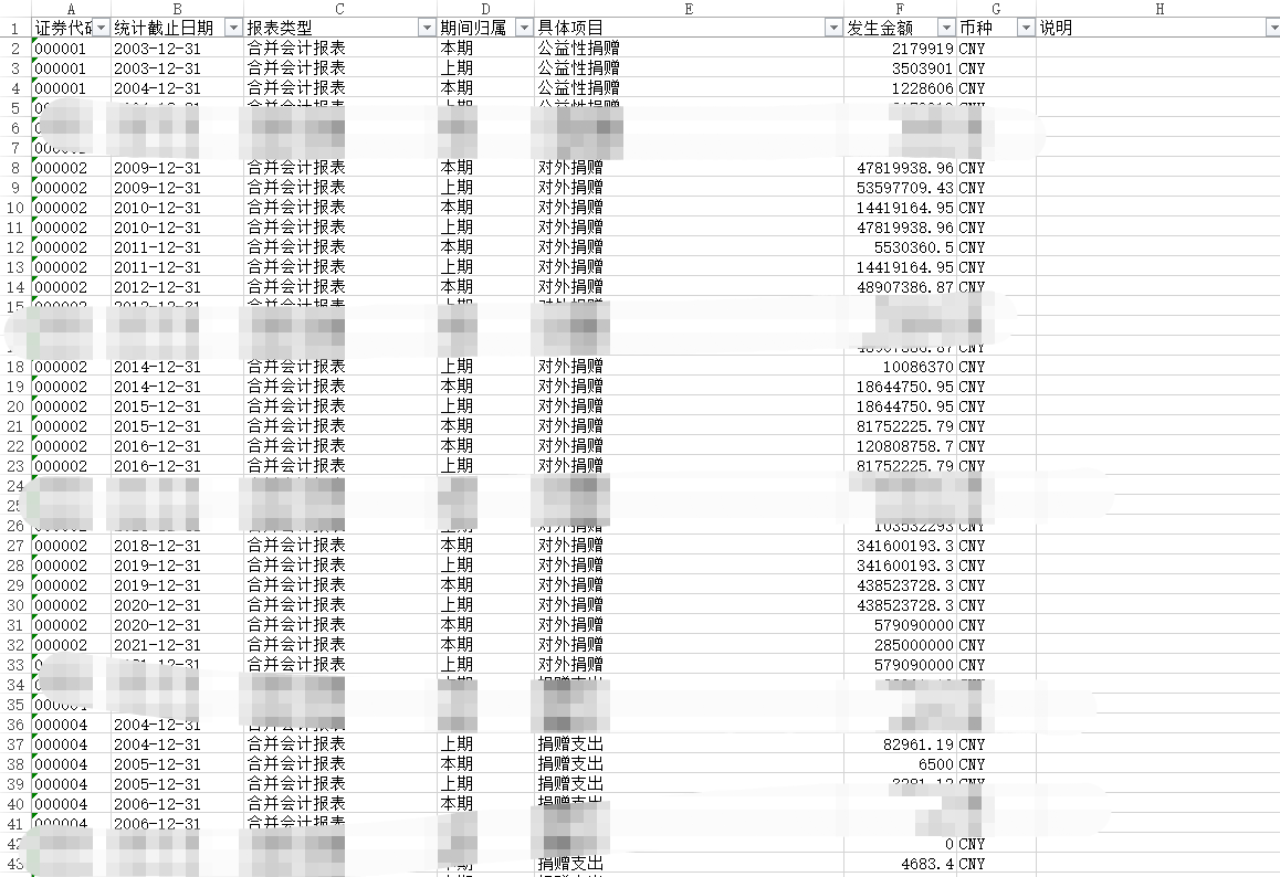 2003-2021上市公司对外捐赠支出明细数据.xlsx