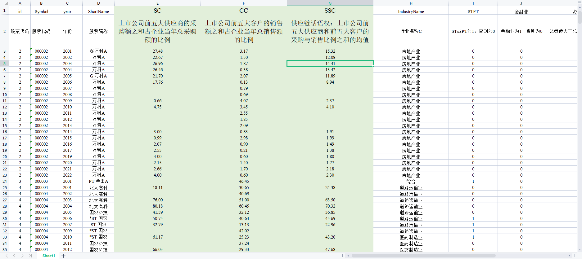 A股上市公司 供应链稳定度2002-2022年