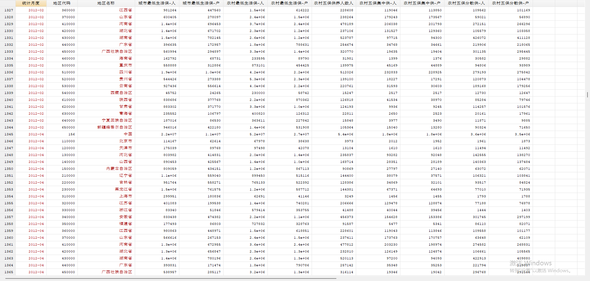 各地区城市与农村最低生活保障平均标准、人数、户数