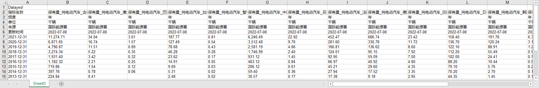 指标名称 保有量_纯电动汽车_合计 保有量_纯电动汽车_澳大利亚 保有量_纯电动汽车_巴西 保有量_纯电动汽车_加拿大 保有量_纯电动汽车_智利 保有量_纯电动汽车_中国 保有量_纯电动汽车_芬兰 保有量_纯电动汽车_法国 保有量_纯电动汽车_德国 保有量_纯电动汽车_印度 保有量_纯电动汽车_日本 保有量_纯电动汽车_韩国 保有量_纯电动汽车_墨西哥 保有量_纯电动汽车_荷兰 保有量_纯电动汽车_新西兰 保有量_纯电动汽车_挪威 保有量_纯电动汽车_葡萄牙 保有量_纯电动汽车_南非 保有量_纯电动汽车_瑞典 保有量_纯电动汽车_英国 保有量_纯电动汽车_美国