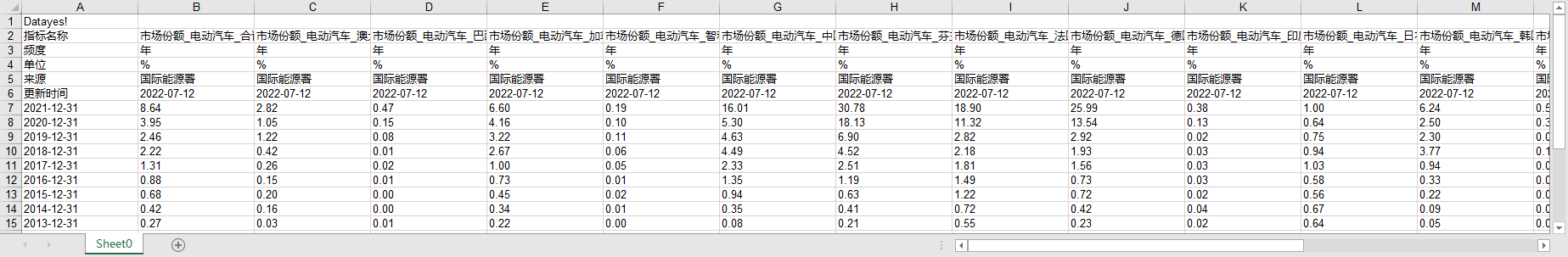 指标名称 市场份额_电动汽车_合计 市场份额_电动汽车_澳大利亚 市场份额_电动汽车_巴西 市场份额_电动汽车_加拿大 市场份额_电动汽车_智利 市场份额_电动汽车_中国 市场份额_电动汽车_芬兰 市场份额_电动汽车_法国 市场份额_电动汽车_德国 市场份额_电动汽车_印度 市场份额_电动汽车_日本 市场份额_电动汽车_韩国 市场份额_电动汽车_墨西哥 市场份额_电动汽车_荷兰 市场份额_电动汽车_新西兰 市场份额_电动汽车_挪威 市场份额_电动汽车_葡萄牙 市场份额_电动汽车_南非 市场份额_电动汽车_瑞典 市场份额_电动汽车_英国 市场份额_电动汽车_美国