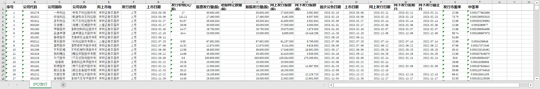 汽车上市公司IPO发行数据199012-202303发行价格股票网上网下发行量发行市盈率中签率