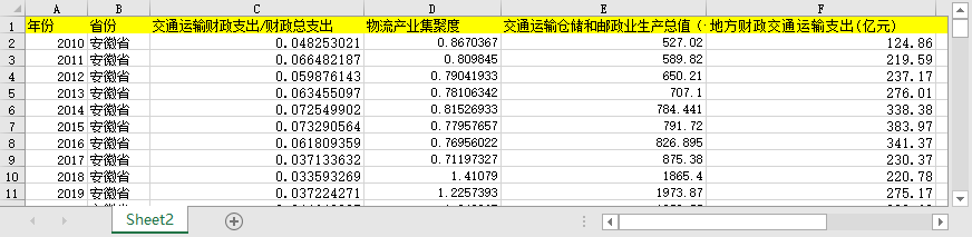省份2010-2021交通运输财政支出/财政总支出物流产业集聚度交通运输仓储邮政业生产总值