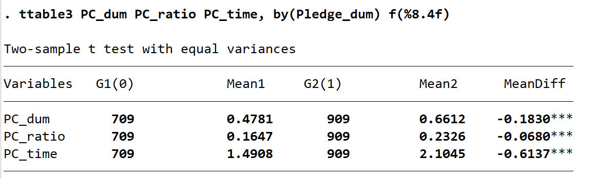Stata小白求助,单变量均值检验结果里的G1(0)和G2(1)什么意思