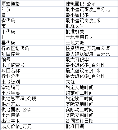 数据来源:中国⼟地市场⽹时间跨度:2000年1⽉-2022年12⽉数 据 量:300w+区域范围:全国各区县主要指标: