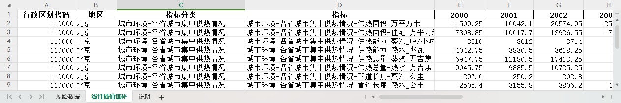 excel数据文件包原始数据(由于多年度指标不同存在缺失值)、线性插值两个版本,提供您参考使用。