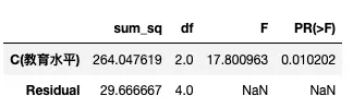 model = ols('考试成绩 ~ C(教育水平)', data=data).fit()