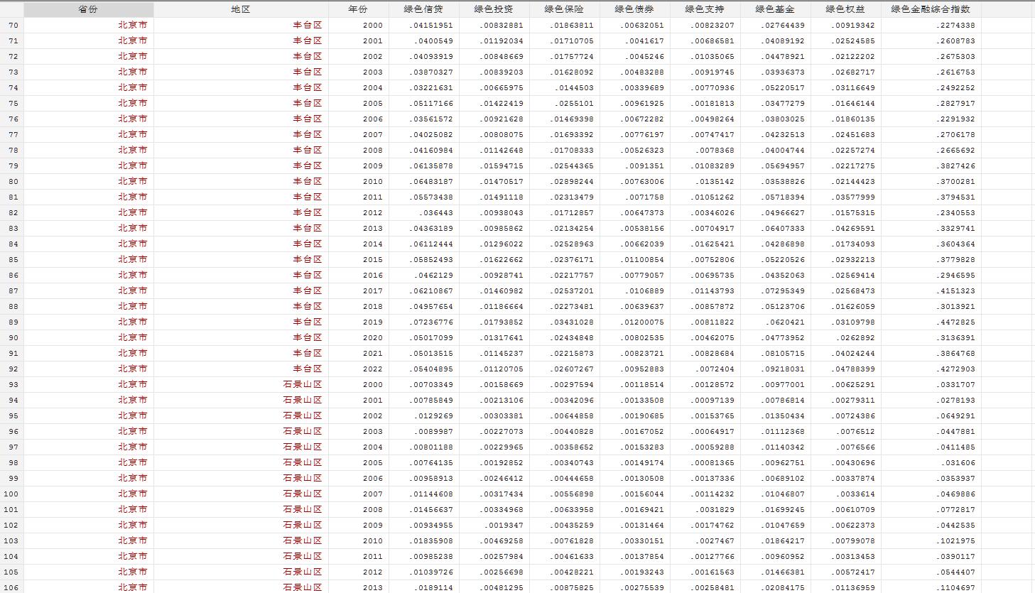 1.绿色信贷——环保项目信贷占比——该省环保项目信贷总额/全省信贷总额