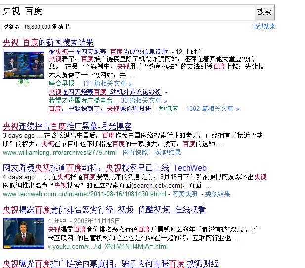 真人真事儿。看了两天央视新闻,随手在百度上搜索了一下“央视 百度”,结果发现事情变成了酱紫(这样子)