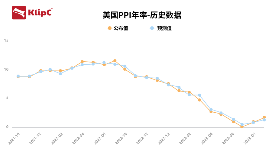 KlipC报道:昨晚,美国8月PPI和零售销售数据公布,据数据显示美国8月PPI同比增长1.6%,超市场预期,环比上升0.7%,创近一年以来最大涨幅。剔除波动较大的食品和能源,8月核心PPI同比增长2.2%符合预期,低于前值2.4%。核心PPI环比增长0.2%,符合预期,低于前值0.3%。
