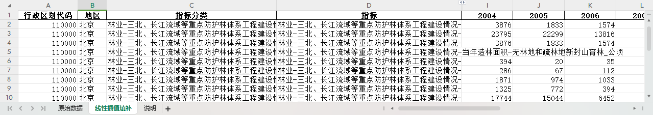 excel数据文件包原始数据(由于多年度指标不同存在缺失值)、线性插值两个版本,提供您参考使用。