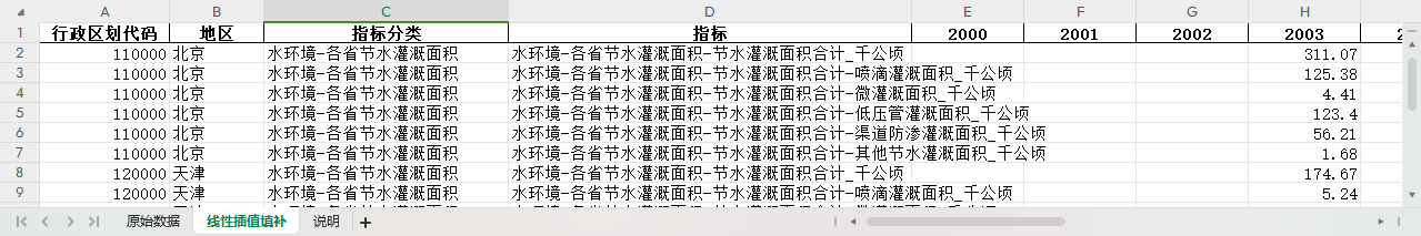 excel数据文件包原始数据(由于多年度指标不同存在缺失值)、线性插值两个版本,提供您参考使用。