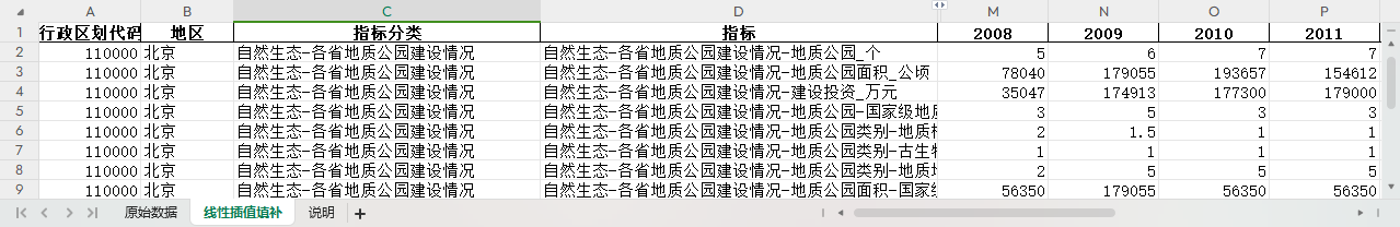 excel数据文件包原始数据(由于多年度指标不同存在缺失值)、线性插值两个版本,提供您参考使用。