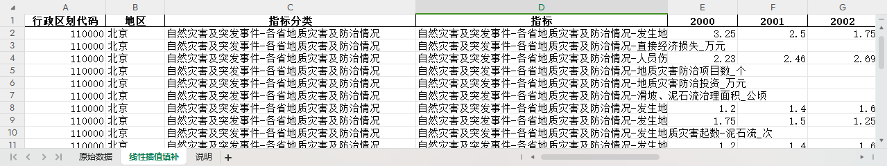 excel数据文件包原始数据(由于多年度指标不同存在缺失值)、线性插值两个版本,提供您参考使用。