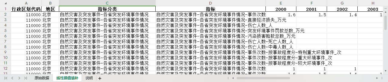 excel数据文件包原始数据(由于多年度指标不同存在缺失值)、线性插值两个版本,提供您参考使用。