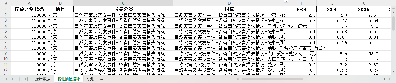excel数据文件包原始数据(由于多年度指标不同存在缺失值)、线性插值两个版本,提供您参考使用。