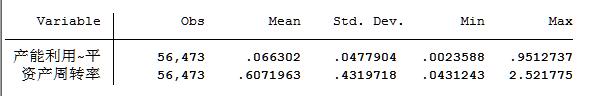 业人数来构建随机前沿生产面,从而计算上市公司产能利用率水平。基于国务院发展研究中心课题组等(2015)的研究结果,考虑到产能利用率主要和企业总资产周转率相关,本文还采用总资产周转率作为企业产能利用率的替代指标进行稳健性检验。