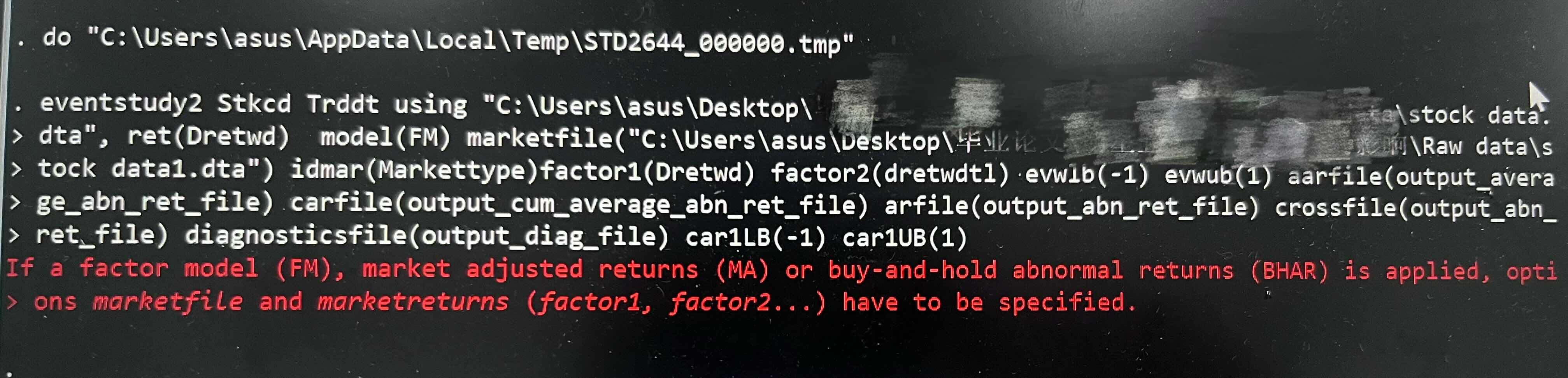 1. **数据准备**:确保你的数据集(例如df)中包含了`stkcd`(股票代码)、`trddt`(交易日期)、`dretwd`(异常收益率)等字段。其中,`dretwd`可以通过从`Dretwd`减去`dretwdl`来得到。