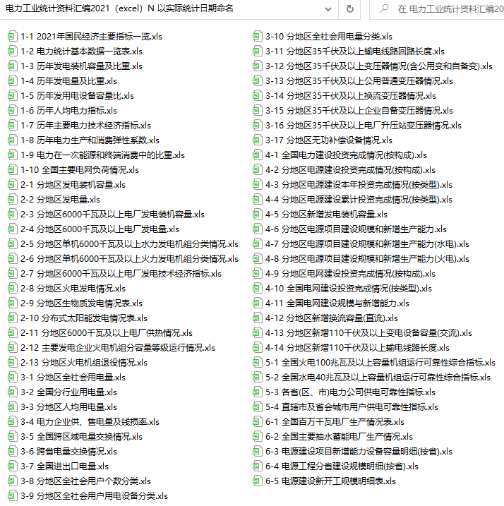 电力工业统计资料汇编2021(excel)N 以实际统计日期命名.rar