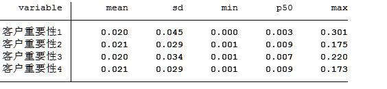 客户重要性4:公司当年审计收费自然对数/会计师事务所当年全部客户的审计收费自然对数之和