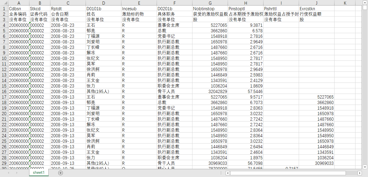 A股上市公司董事监事高管股权激励情况2006-2023激励标的物具体职务获受的激励权益数量占本期授予激励权益总量的比例激励权益占授予时公司总股数的比例(%)行使权益额