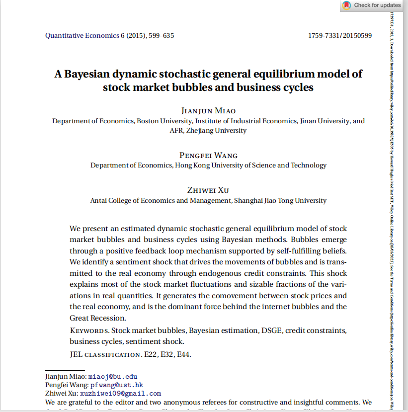 2. Miao et al. (2015,QE) 股市泡沫和DSGE模型的贝叶斯估计;