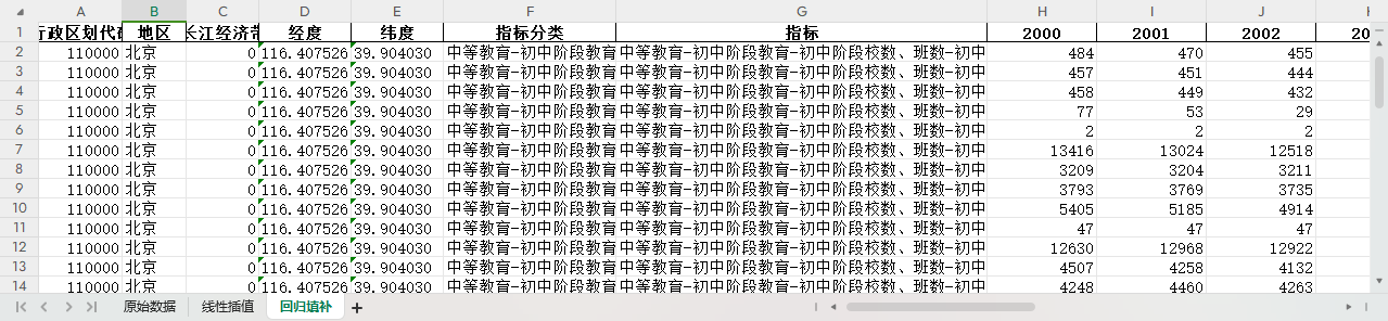 excel数据文件包原始数据(由于多年度指标不同存在缺失值)、线性插值、回归填补三个版本,提供您参考使用。