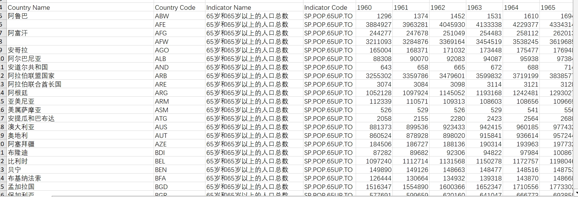 世界各国65岁及以上总人口数1960-2022,一点点论坛币,分享给大家