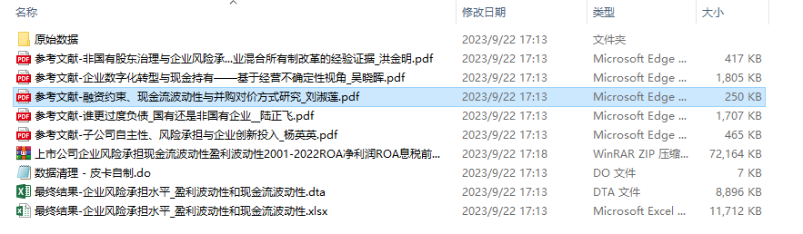 上市公司企业风险承担现金流波动性盈利波动性2001-2022ROA净利润ROA息税前利润