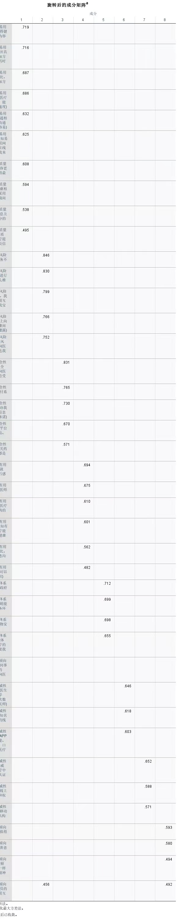 家人们,spss信效度分析,自己设计的问卷,已经用了209个样本量了,提取因子8个是最整齐的时候,但是还是会出现问题跑到其他因子里面的情况以及一个问题在两个因子中出现,这种情况应该怎么办啊?尝试过9、10个以及7、6、5个因子,都比较乱,就是问题跑到各个因子里面。如果是要删问题的话就得删除比较多的问题。求大神解答!!!!!!!!!!!!!!!!!