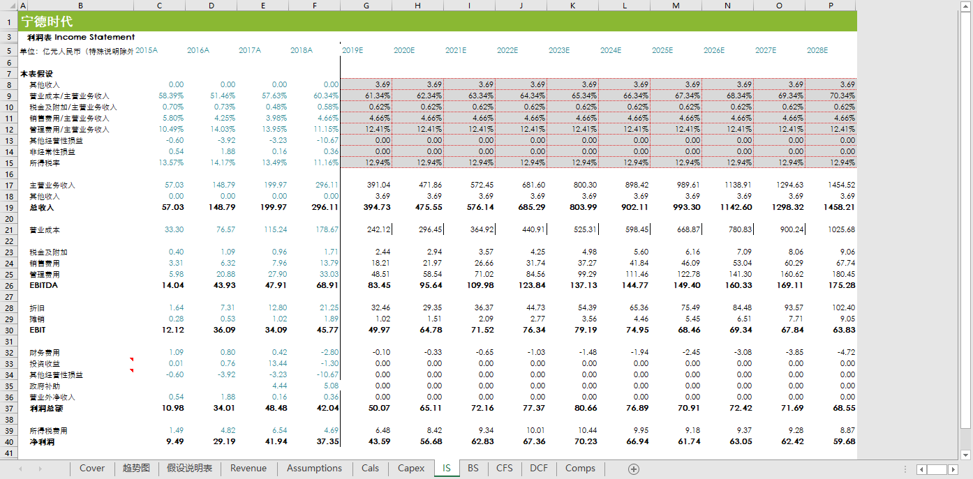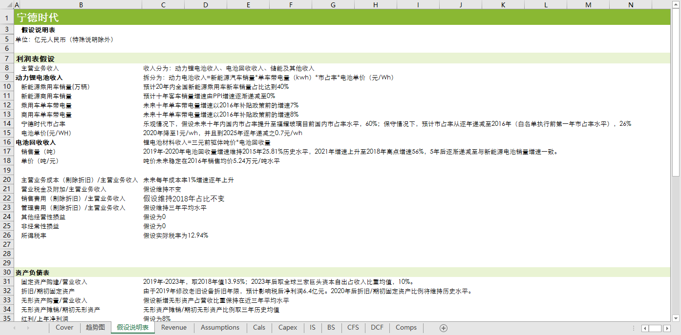 汽车类行业企业估值模型财务分析预测自动计算生成模板新能源电池乘用车公交车收入成本预测DCFDDM估值历史比率