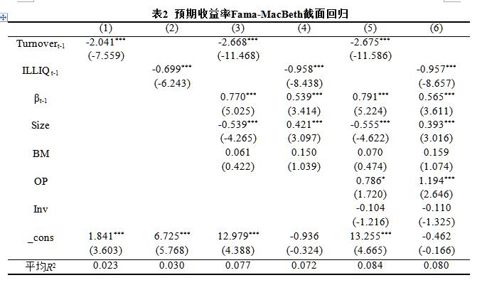 表2:预期收益率Fama-MacBeth截面回归